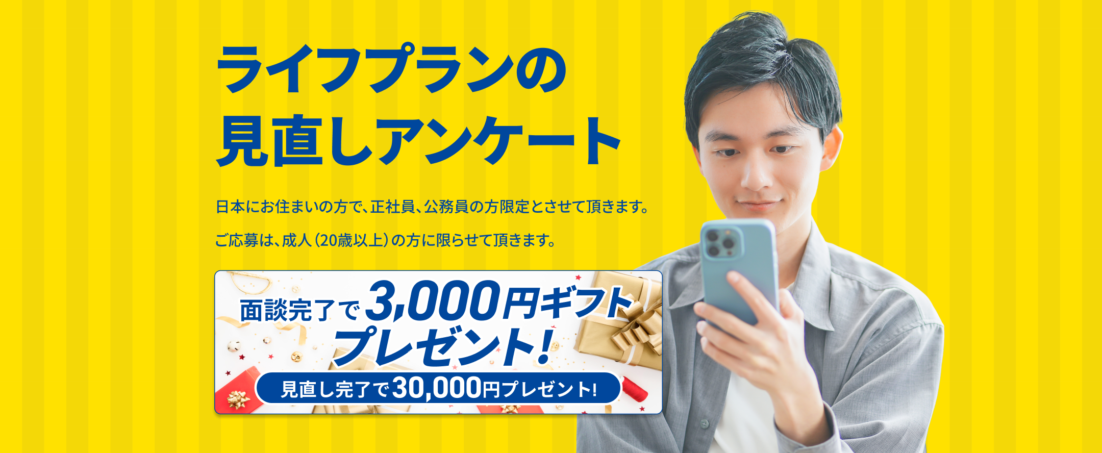 本ページ経由で個別面談をされた方で、条件を満たしたお客様に、ギフト3,000円分を付与いたします。